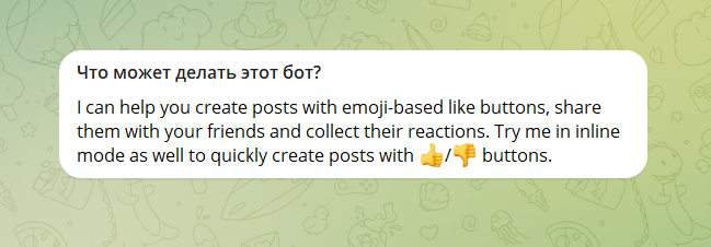 Мультиязычный переводчик, поддерживающий целых 30 языков! В их число входит и украинский (что, признаться, для ботов-переводчиков пока редкость). Очень достойно справляется даже со сложными текстами, включая художественные.